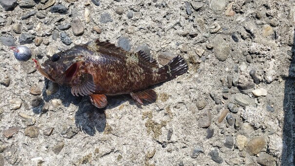 俺だけ車に戻り、アオムシと飲料水ふたり分持って、再び先端へテクテク歩いていく。釣りをはじめる前に汗だくでへとへとになる。片道850メートルらしいので、この時点で2550メートル歩いているので無理もない。。。