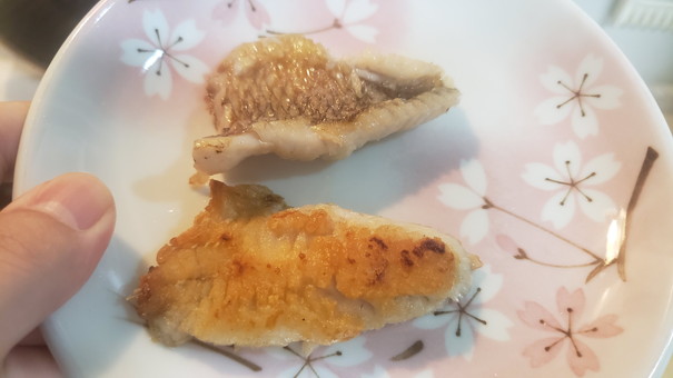 あ、うまい。ふわふわ白身。ちょっと塩ふりすぎて辛いけど、優しくもワイルドな脂もほんのり。悪くないっていうか、普通にうまい! 少し水っぽいけど問題ない。次回もう少し大きかったら、煮付けにしてみようかな。